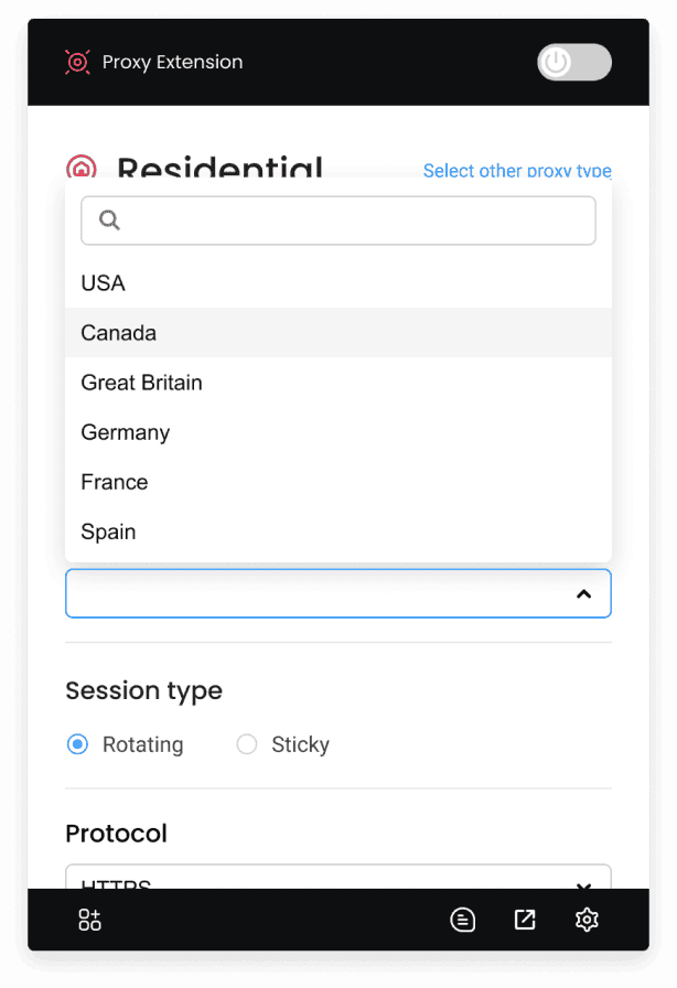 看,使用我们的代理和扩展程序,你无需担心浏览器代理设置和会话字符串。只需选择代理类型、位置、会话类型,你就大功告成了。
