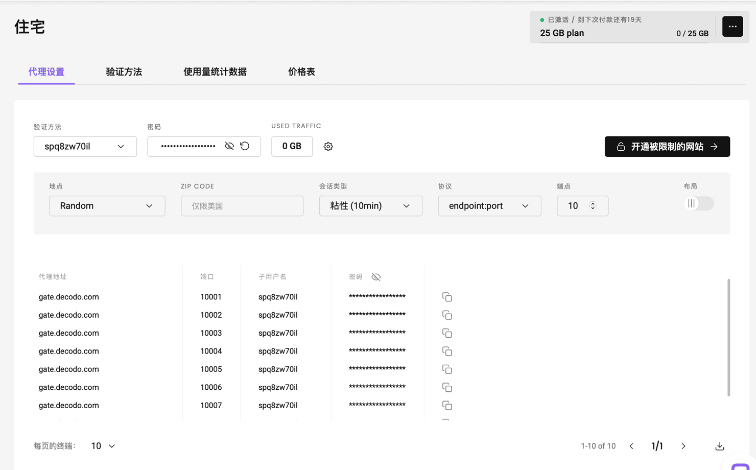 您可以使用域:端口格式访问 Decodo 代理,有两种验证方法: