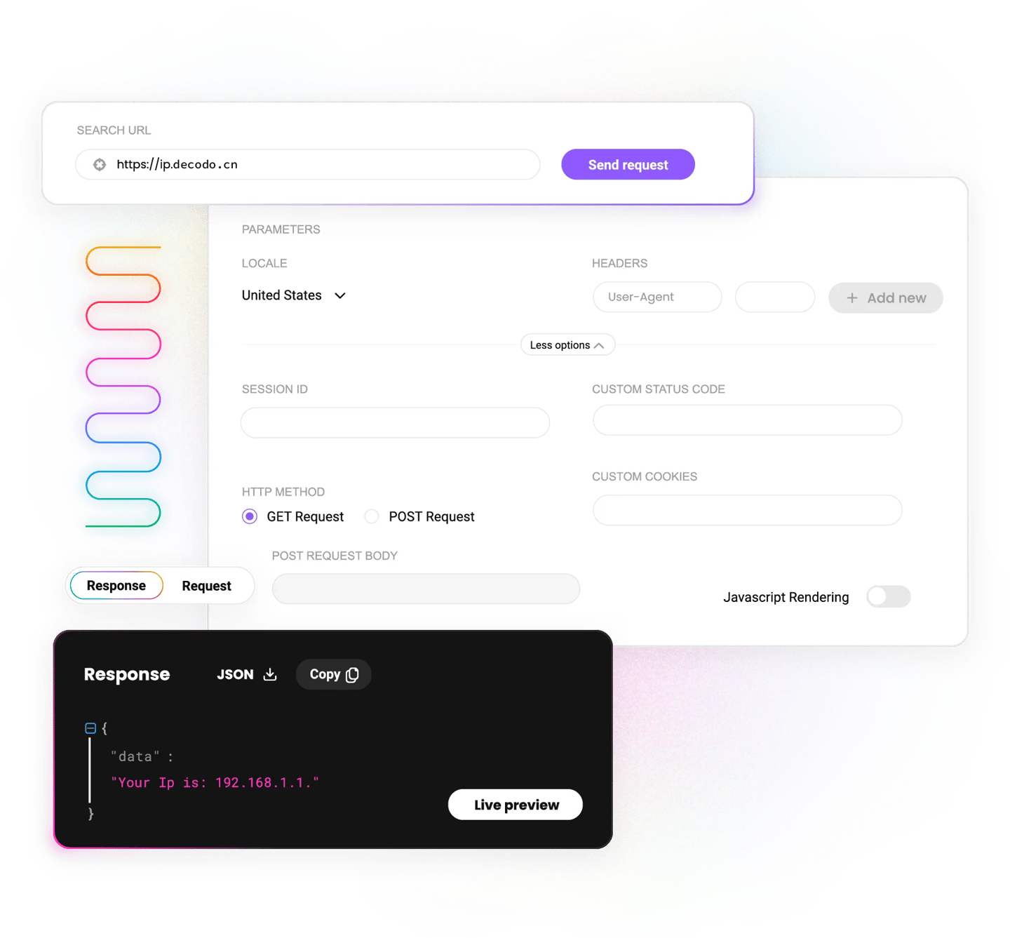 网站解锁工具在帮助您访问任何网站并进行数据抓取方面表现出色。使用网站解锁工具,您无需担心绕过验证码和访问限制——这些障碍将被自动消除。只需发送一次请求,即可眼见结果呈现!