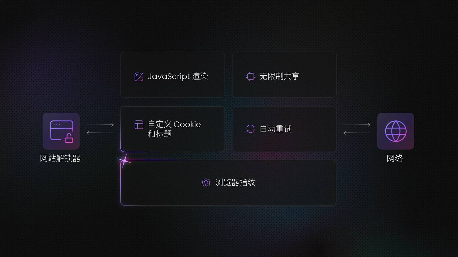 只需将网站解锁工具集成到您的代码中,它就能自动解锁您指定的任何网站!