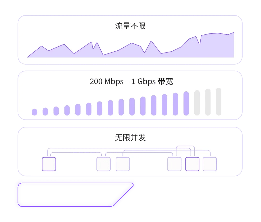 无限代理服务让您能够根据工作负载需求,在专用基础设施上无限扩展流量、带宽和并发连接。